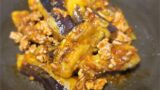 こんな感じでセリを豚バラ肉に押し付けて焼いていくよ!
